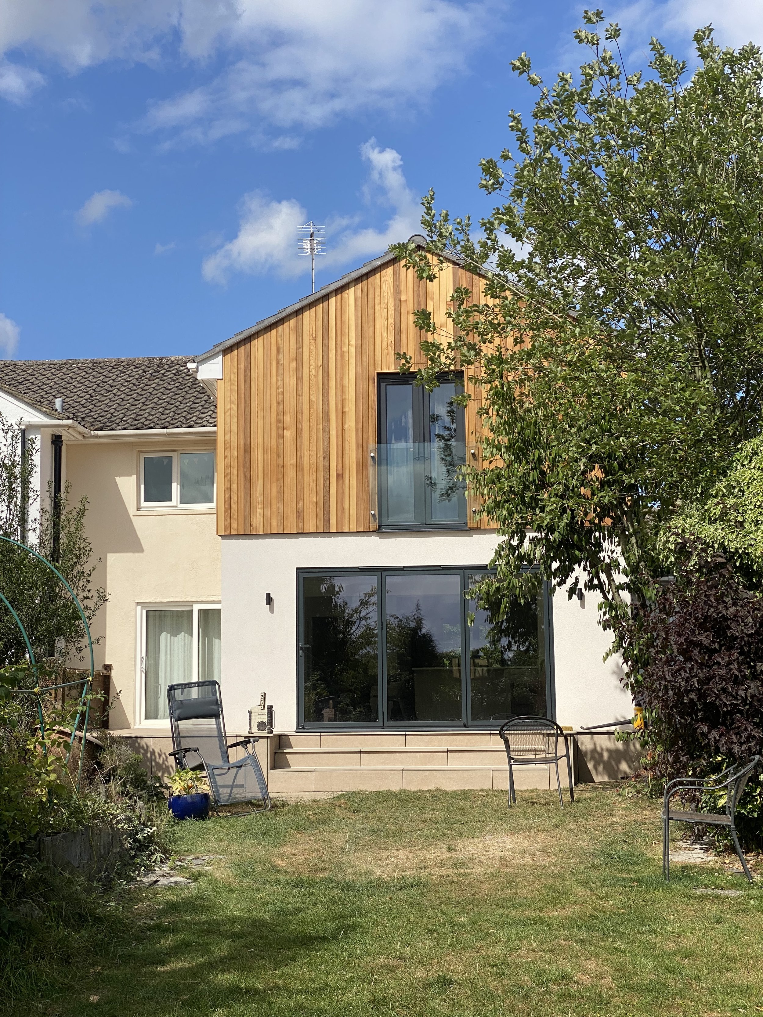The extension added a spacious master bedroom with a modern en-suite on the upper floor. On the ground floor, we created a stylish open-plan kitchen and dining area, perfect for family living and entertaining.